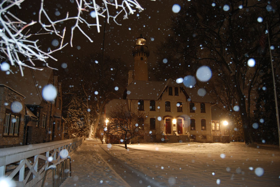 EVANSTON'S LIGHT HOUSE ON A CHRISTMAS NIGHT